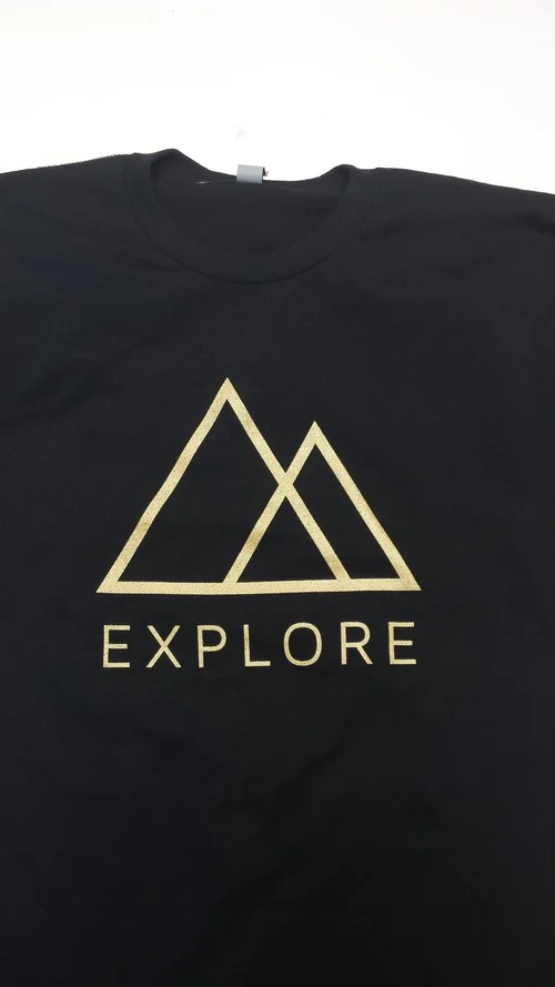 Gold METALLIC ink printed on 100%cotton shirt.